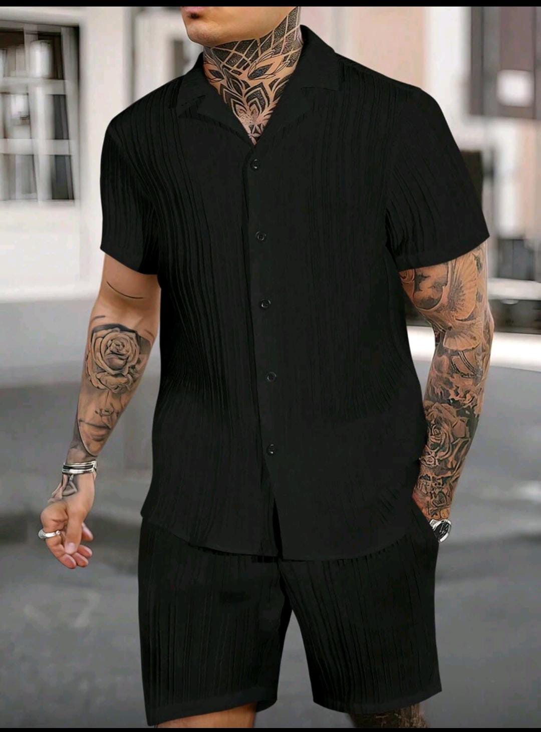 Este conjunto de camisa y pantaloneta para hombre combina comodidad y estilo urbano en una sola prenda. Fabricado con materiales suaves, frescos y transpirables, es perfecto para tus días de descanso o salidas casuales. La camisa tiene un ajuste moderno y ligero, mientras que la pantaloneta ofrece libertad de movimiento y bolsillos funcionales para mayor practicidad.